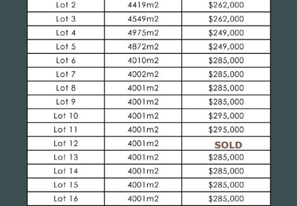 Services to each allotment include, NBN to the curb, power (3 phase) and town water.