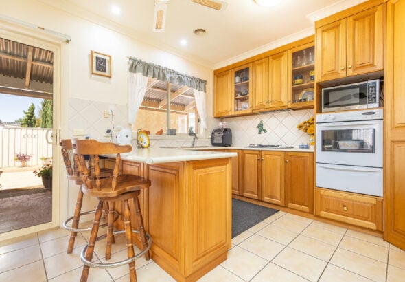 Inside, the home welcomes you with a light-filled lounge room highlighted by a charming bay window, flowing naturally through to the kitchen and dining area. The kitchen features warm timber cabinetry, a gas cooktop, dishwasher and generous storage, creating a practical space for everyday living.