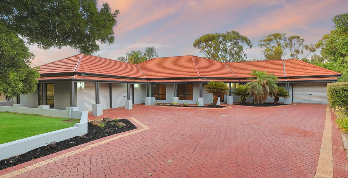 Two bedrooms, including the master suite, each have their own bathroom, while the remaining three bedrooms, each with walk-in robes, are set down a separate wing and serviced by a central bathroom, powder room, and separate toilet – ideal for growing families or hosting guests.