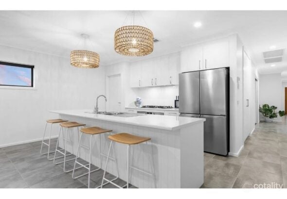 This four bedroom, two bathroom house is located in the ideal location, offering a master bedroom with a walk-in robe and ensuite bathroom, plus two living spaces. All the rooms, particularly the master and open plan living room are of great size – the walk in pantry to your kitchen is a real feature but what truly impresses is the size of the yard!