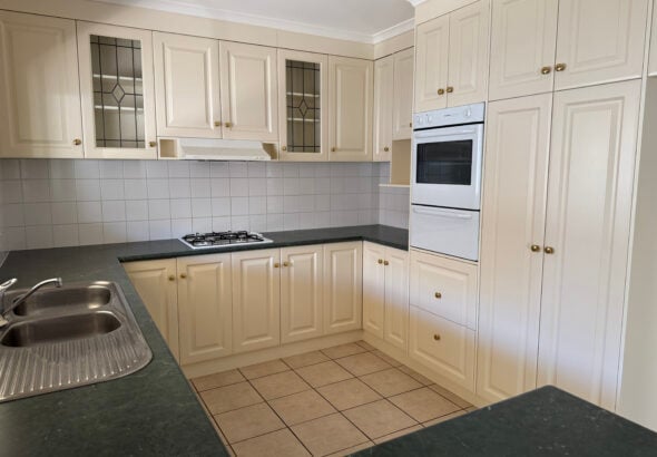 – Gas cooktop, wall on and dishwasher, pantry